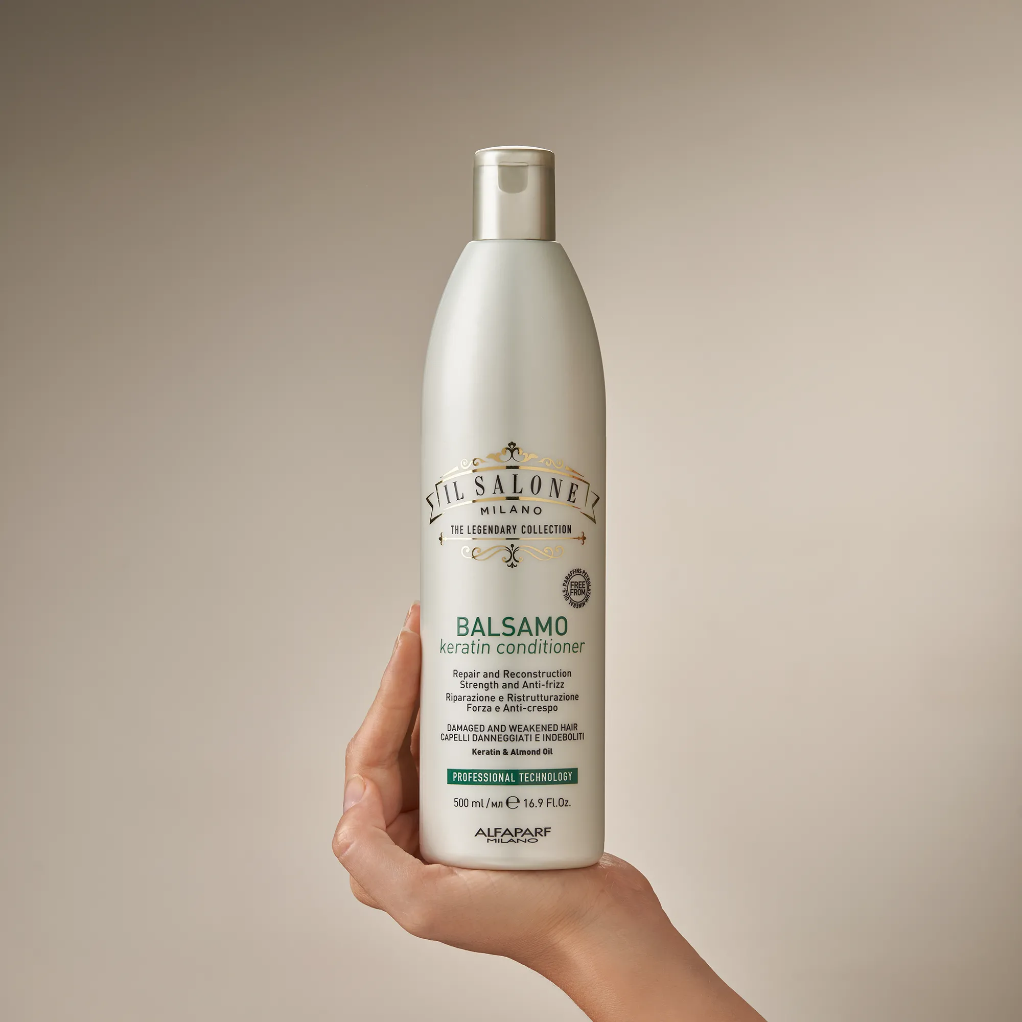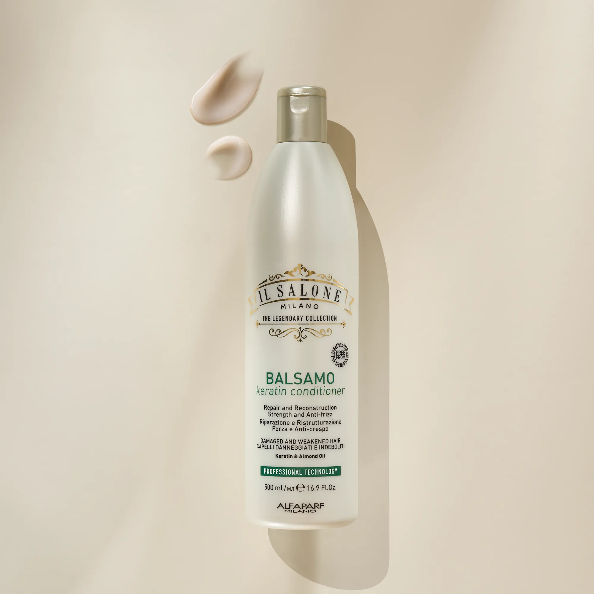 Професионален балсам за слаба и изтощена коса. Незабавно разплита косъма, без да оставя следи, като подпомага възстановяването на космените влакна и предотвратява отслабването им. Силна, регенерирана коса. Използва се от фризьори.