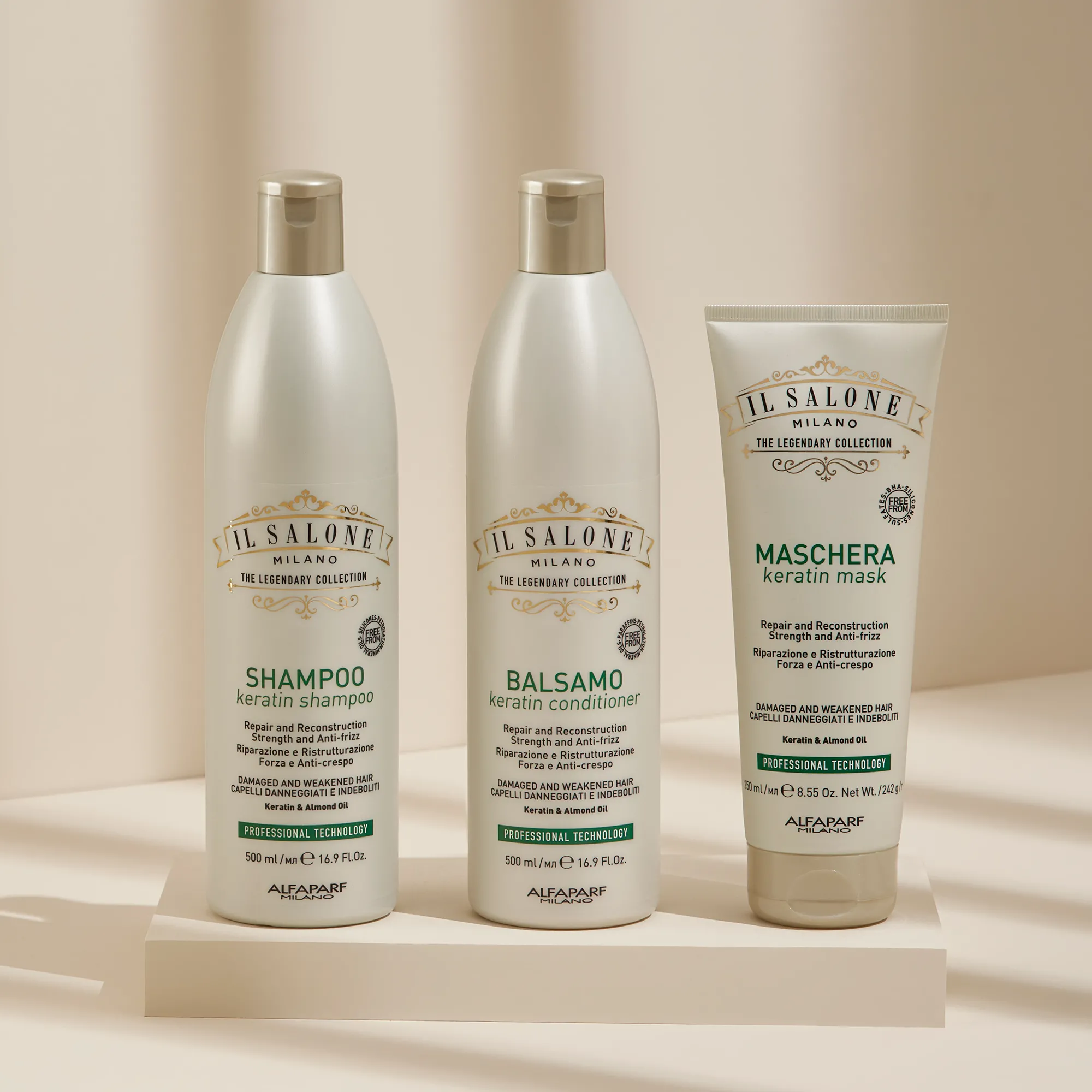 Професионалната продуктова линия с Keratin възстановява, регенерира и укрепва косата. Противопърхот*.