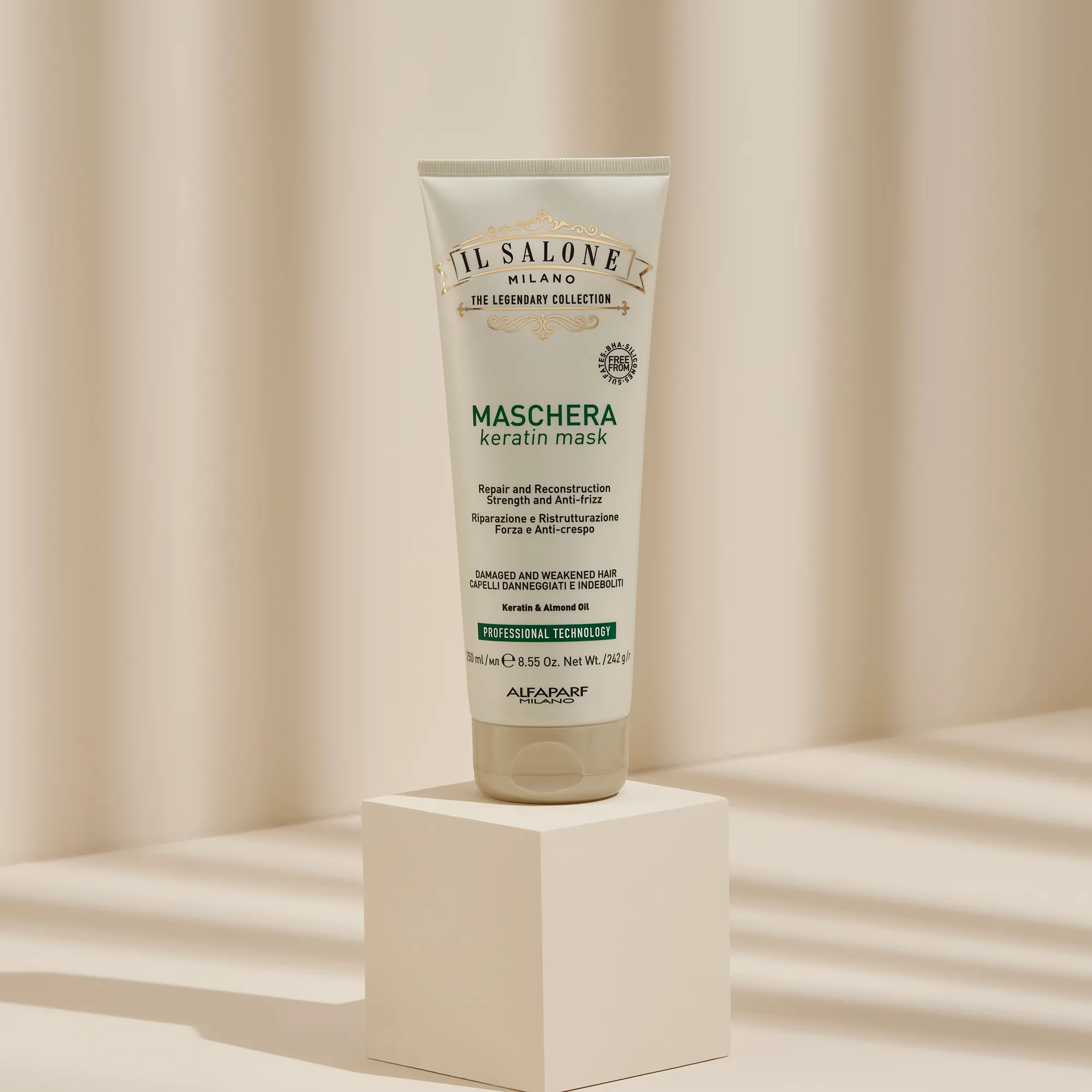 Професионална маска за слаба и изтощена коса. Подпомага регенерацията и възстановяването на космените влакна ден след ден. По-силна, по-устойчива и по-сияйна коса. Използва се от фризьори.