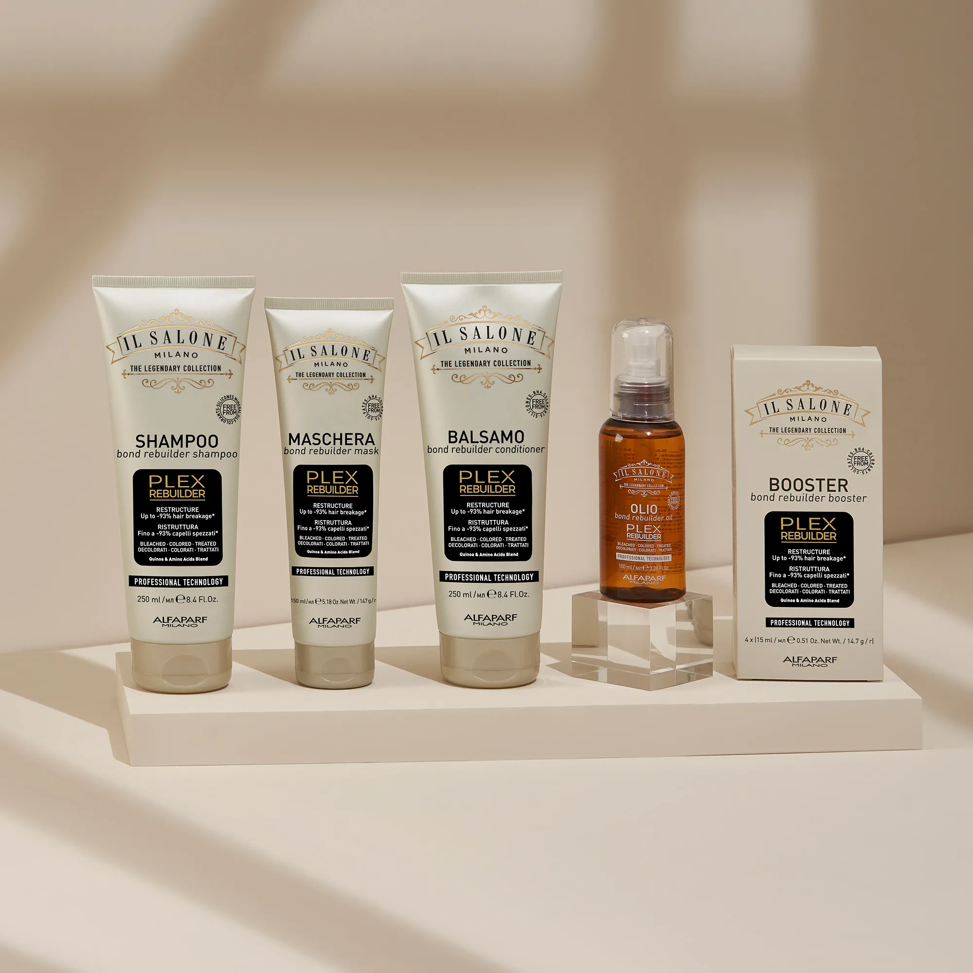 Открийте продуктовата линия Plex Rebuilder - професионална технология, специално разработена за обезцветена, боядисана и обработена коса, която възстановява нарушените връзки отвътре, за да възвърне тялото и жизнеността си.